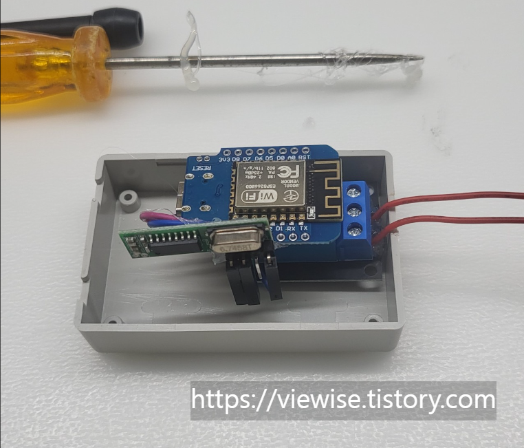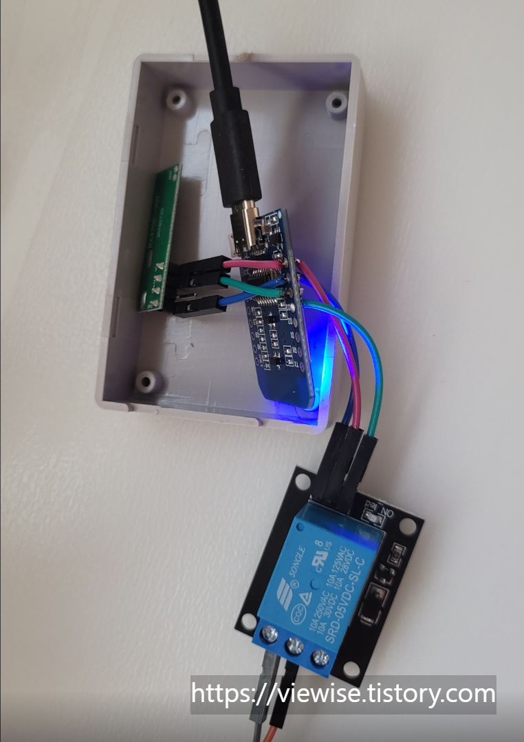 릴레이 높이가 높아 결국 뚜껑은 못닫고, 글루건으로 마무리합니다.