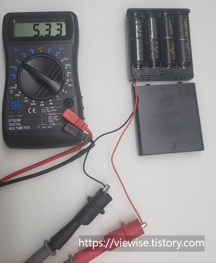 건전지를 4개 넣으면 6v 이지만, 충전지를 4개 넣으면 5v 남짓 합니다.
